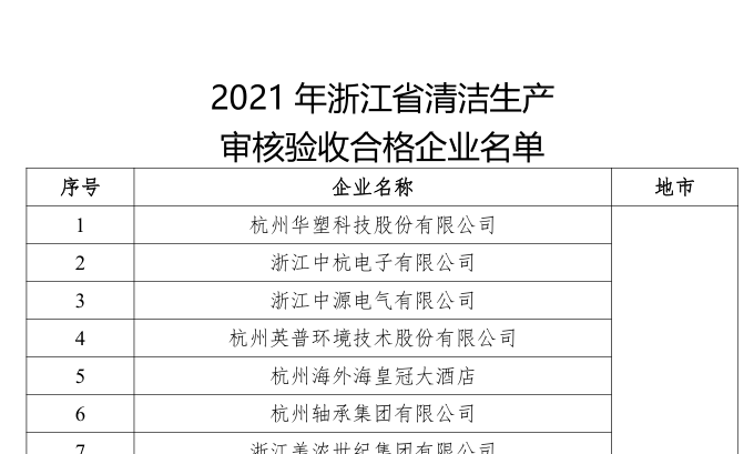年度浙江省清洁生产审核验收合格企业