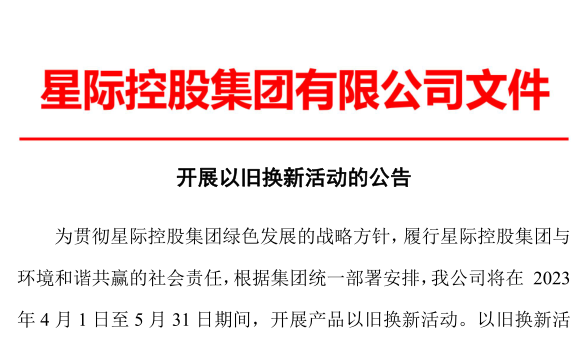 星际控股开展以旧换新活动的公告