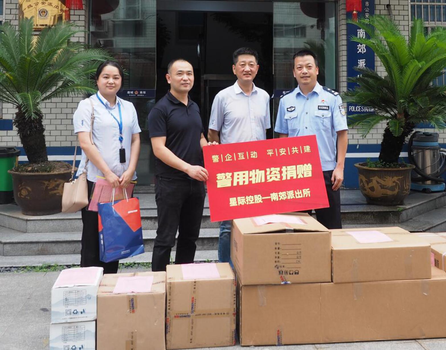 7月8日下午,星际控股集团代表前往南郊派出所举行定向警用物资捐赠活动,本次共捐赠警用物包括新型单警装备、反光衣、测距仪、警戒带等执勤必备装备以及医用酒精、一次性口罩等防疫工具,共计27000元。...