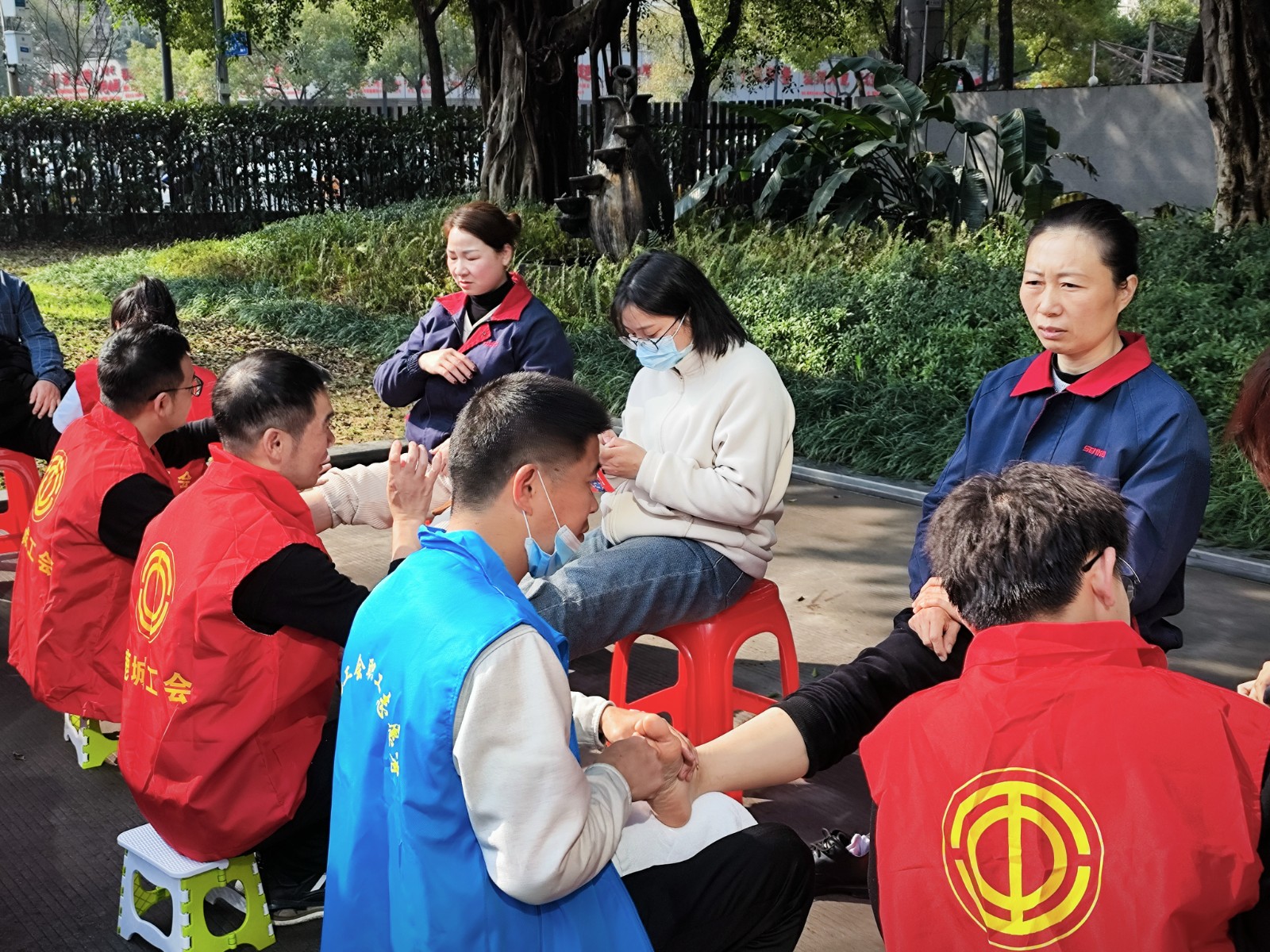 活动现场,鹿城区各行各业的60余名劳模工匠参加志愿服务活动。志愿者们身着统一的志愿者服装,热情洋溢,充满干劲。他们分工明确,有的负责为企业提供科技、职业、法律咨询,有的负责为职工提供维修服务,还有的负责为职工提供刮痧、推拿按摩、口腔检查、量血压、理发等一系列暖心服务,现场更有温州名小吃炒粉干、猪油糕等美味提供。