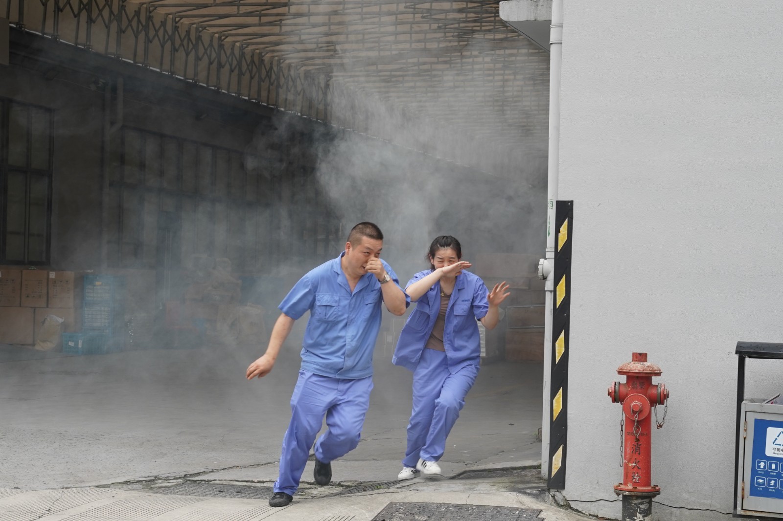 此次活动真实模拟火情发生,组织现场疏散。在实际演练中,各疏散组的成员负责协调本楼层员工按顺序疏散,并稳定员工的情绪,大声地指挥,教育员工撤离时要用湿毛巾捂住口鼻,弯腰撤离,注意楼梯口行走安全,避免在楼梯口发生拥挤、踩踏。
