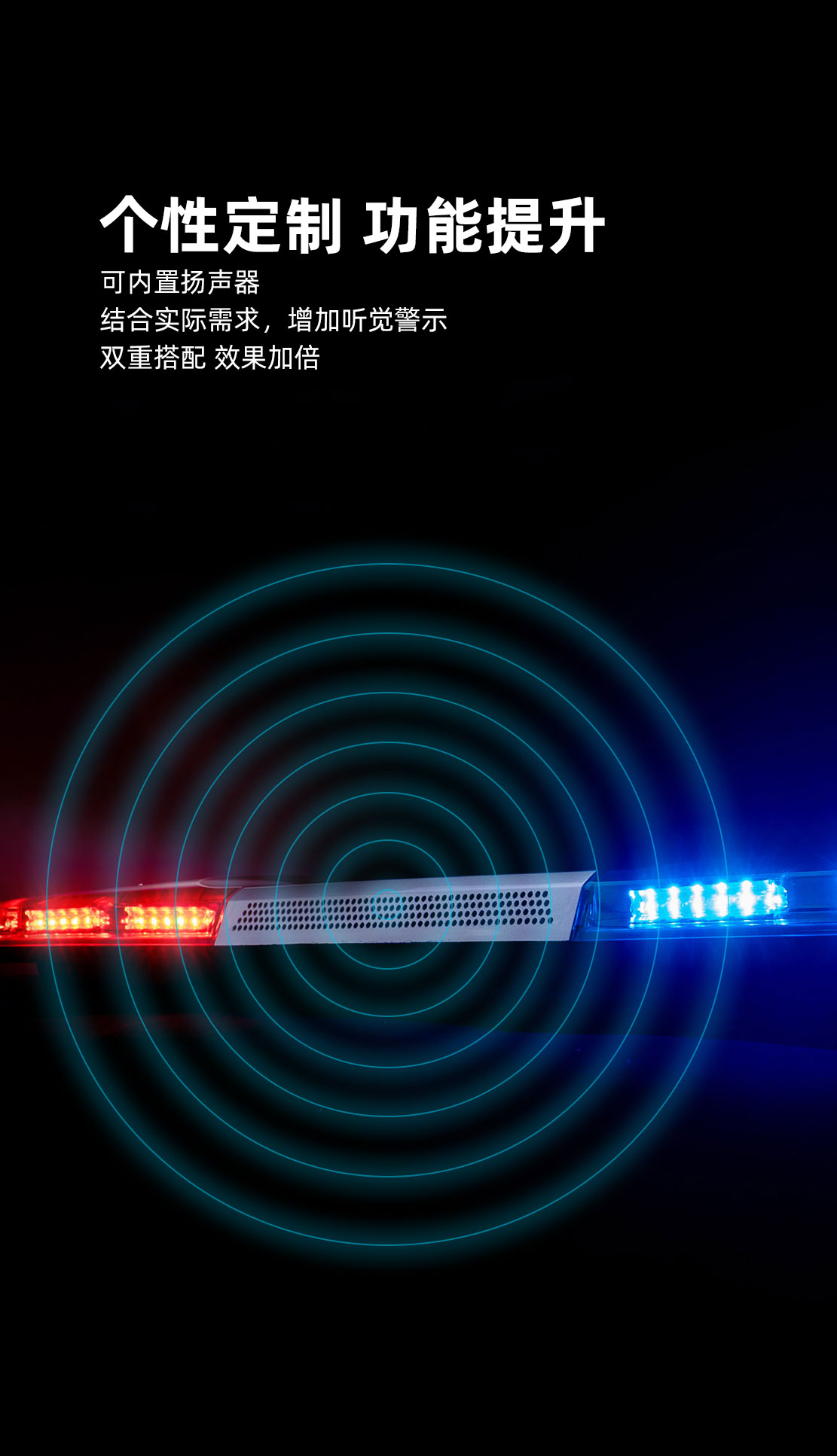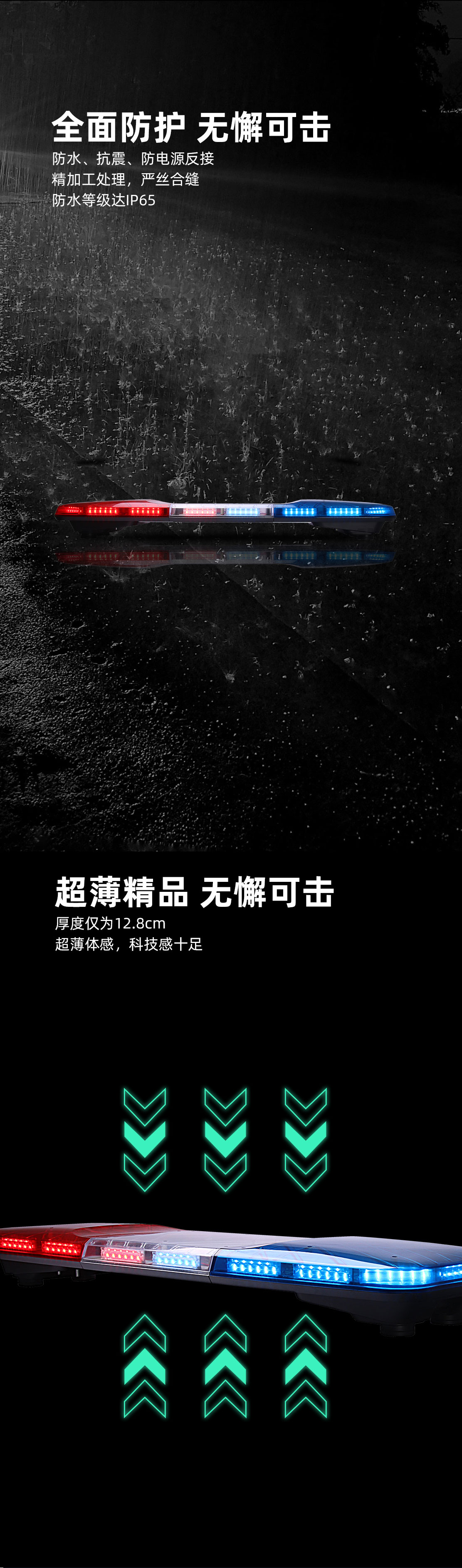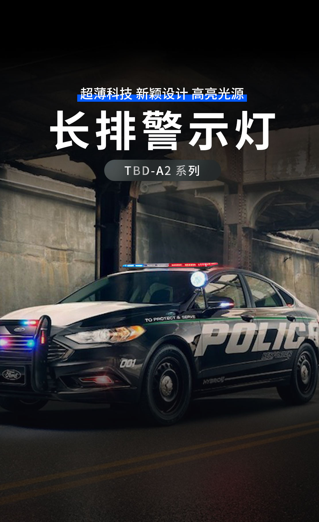 TBD-A2系列长排警示灯是我公司自主设计开发的超薄中高端产品,外形设计新颖具有较强的科技感,整体效果充分显示了警车的威严与庄重。在道路交通行驶中以警示过往行人、车辆避让和遵守交通等行为。