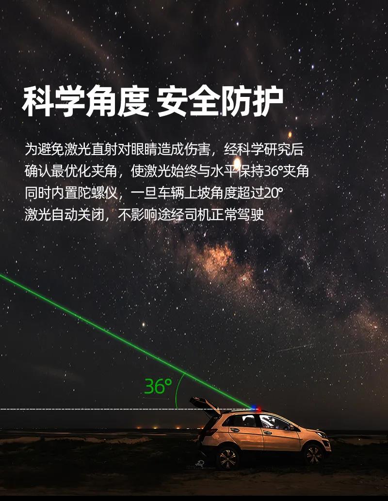 TBD330000系列激光长排警示灯内置2组大功率激光器,可射出2条大功率绿色激光光线,5种频闪模式,射程达2公里以上,可以产生强烈的视觉感,达到有效醒目警示效果,产品普遍用于高速公路巡查和高速定点警示等。