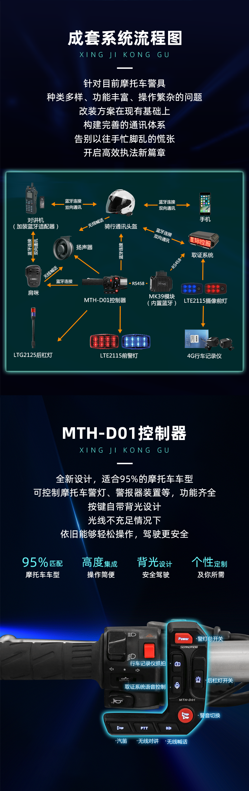 针对目前摩托车警具,种类多样、功能丰富、操作繁杂的问题,改装方案在现有基础上,构建完善的通讯体系,告别以往手忙脚乱的慌张,开启高效执法新篇章。