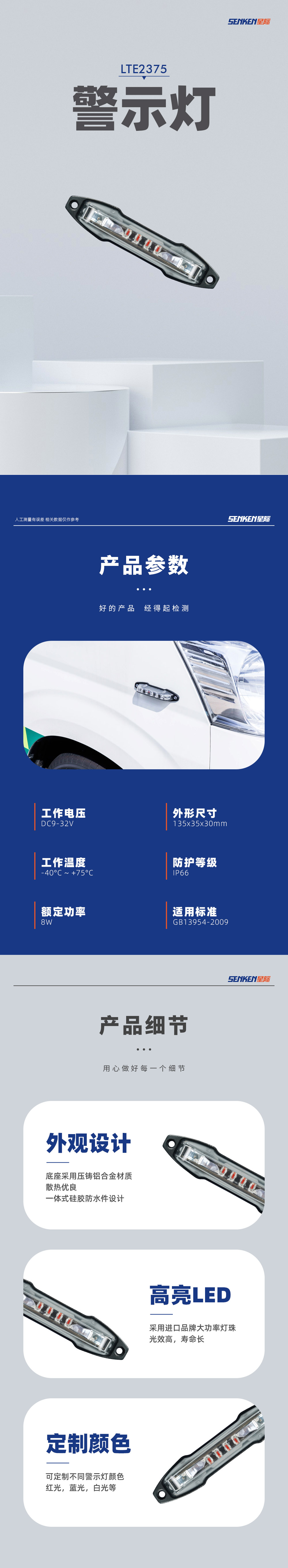 LTE2375警示灯可安装在警车,消防车等特种车辆的车身,前后保险杆位置起到警示作用。
