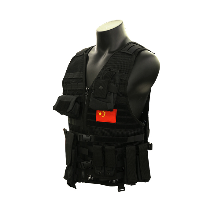 背心主体含内藏式多规格仓位,且通过背心搭载的MOLLE系统可挂载腰部勤务组件,由新标快拔警棍套、催泪器套、手铐套、电台套、强光手电套、工作包等组成。