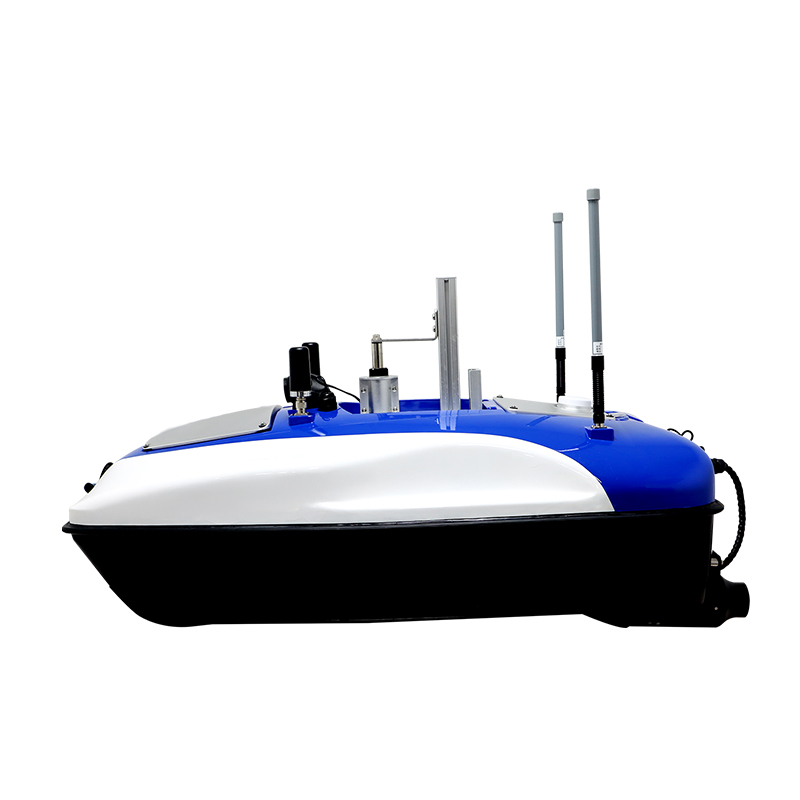 双体船型设计,可实现前进后退、左右转向方位移动,可搭载实时语音、视频通讯功能,并拥有强大的水域巡逻探测能力,起到广阔水域无人巡逻、安防、4G视频图传、声呐探测、声光驱离、喊话报警的作用。