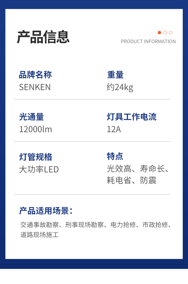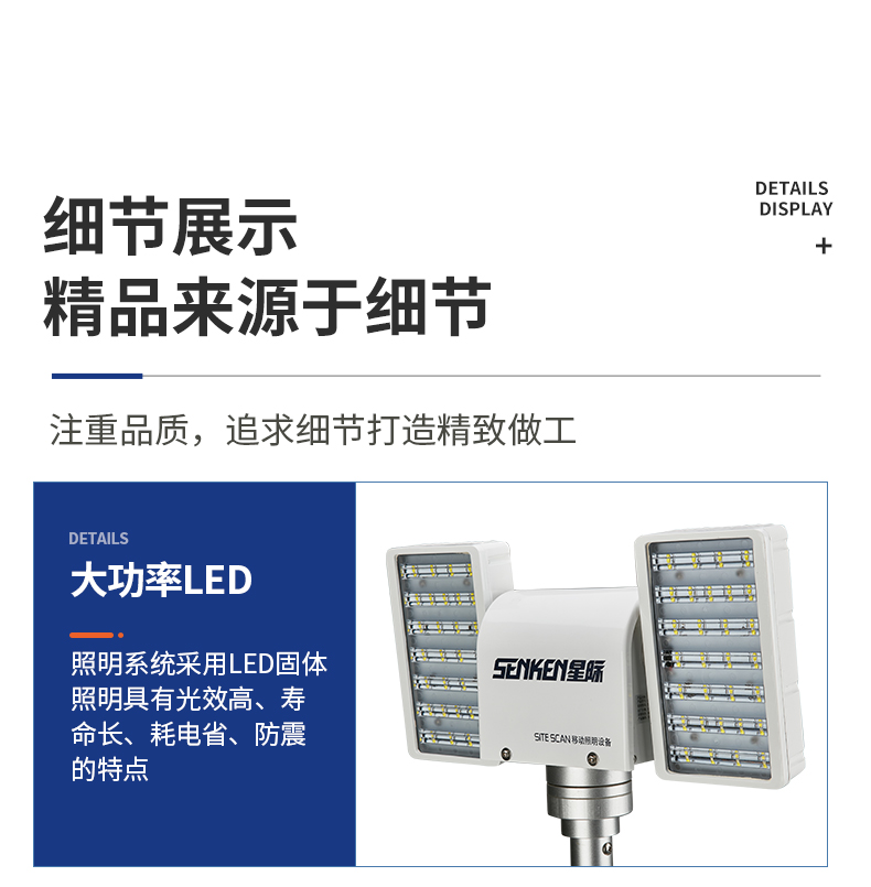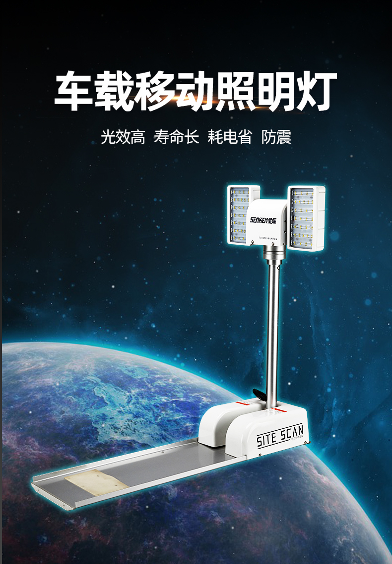 小型车载移动照明设备主要应用在轿车等小型特种车辆上安装使用,由于外形小巧,它非常适合在较小车辆顶部进行安装使用。照明系统采用LED固体照明具有光效高、寿命长、耗电省、防震的特点;整机外形尺寸小巧,重量低。