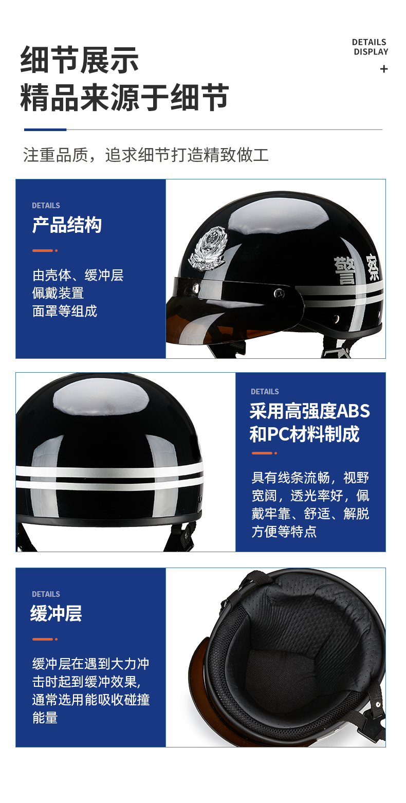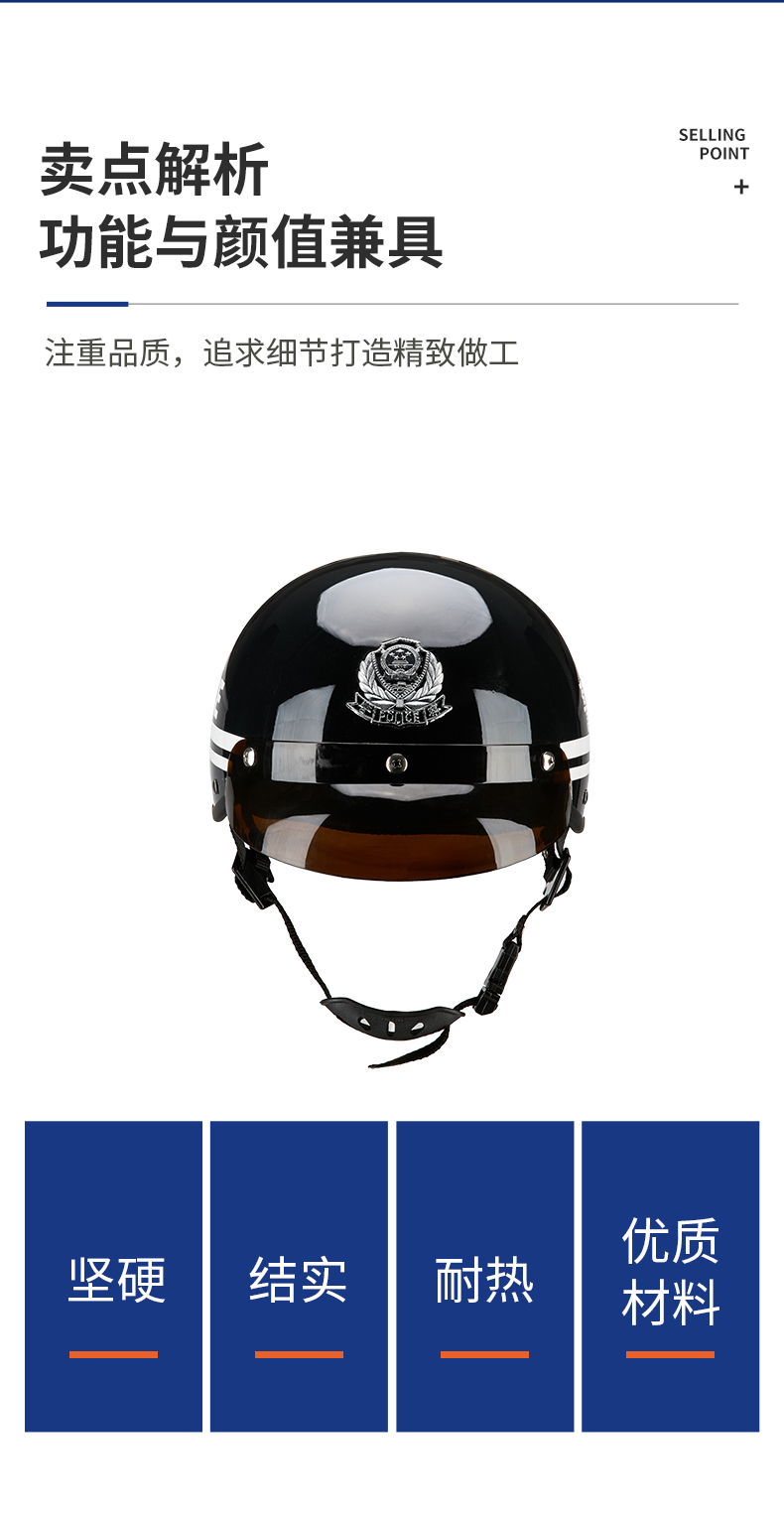 MTK-X-01警用摩托车头盔(夏盔)是一种用于防止头部及面部受到打击或其他潜在的伤害性攻击的警用装具。本头盔采用高强度ABS和PC材料制造,头盔由壳体、缓冲层、佩戴装置等组成,具有线条流畅,视野宽阔,透光率好,佩戴牢靠、舒适、解脱方便等特点,符合《GA295-2001警用摩托车头盔》标准的规定。是警务人员在日常执勤巡逻中保障自身的必备防护装备。