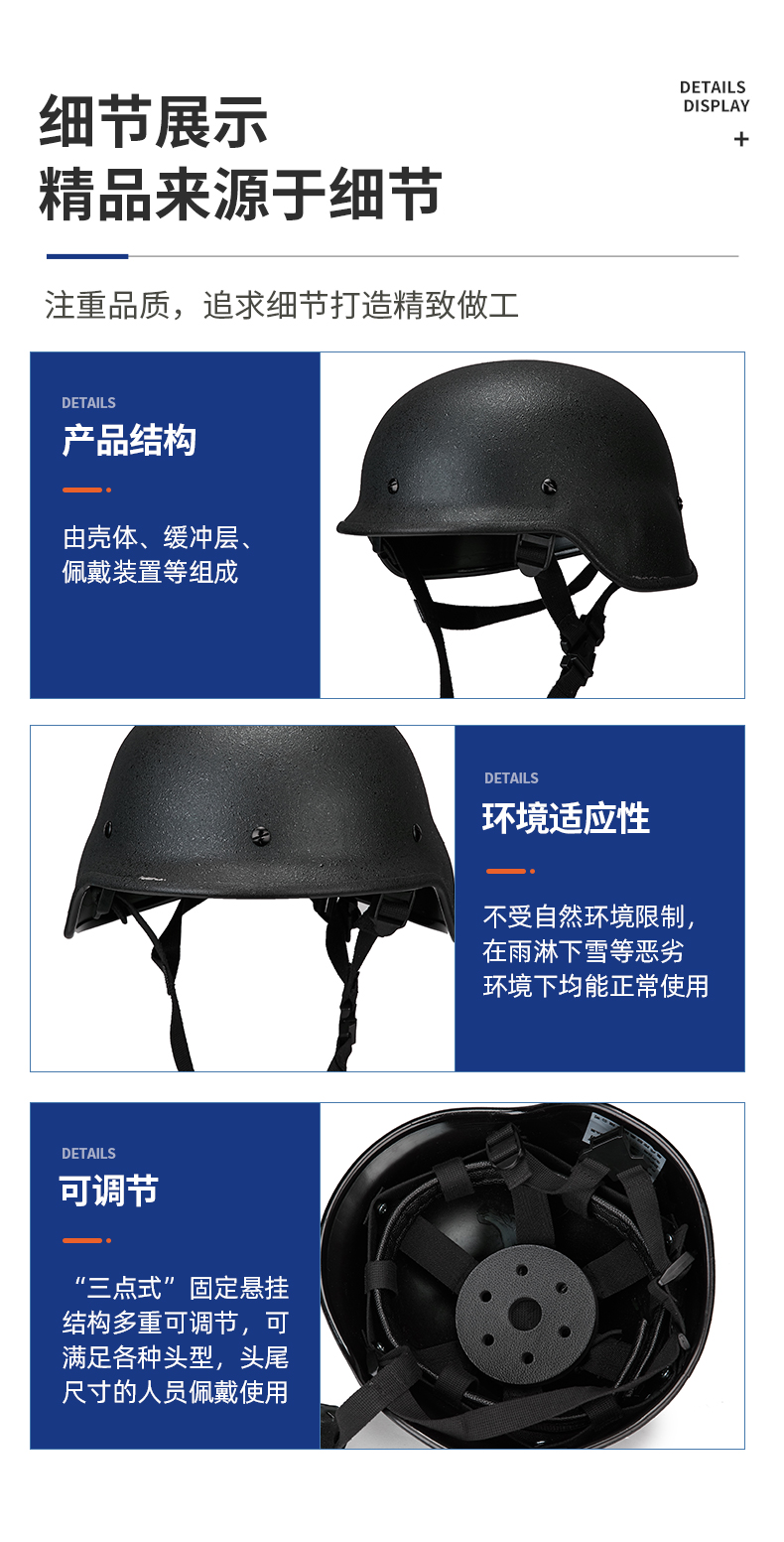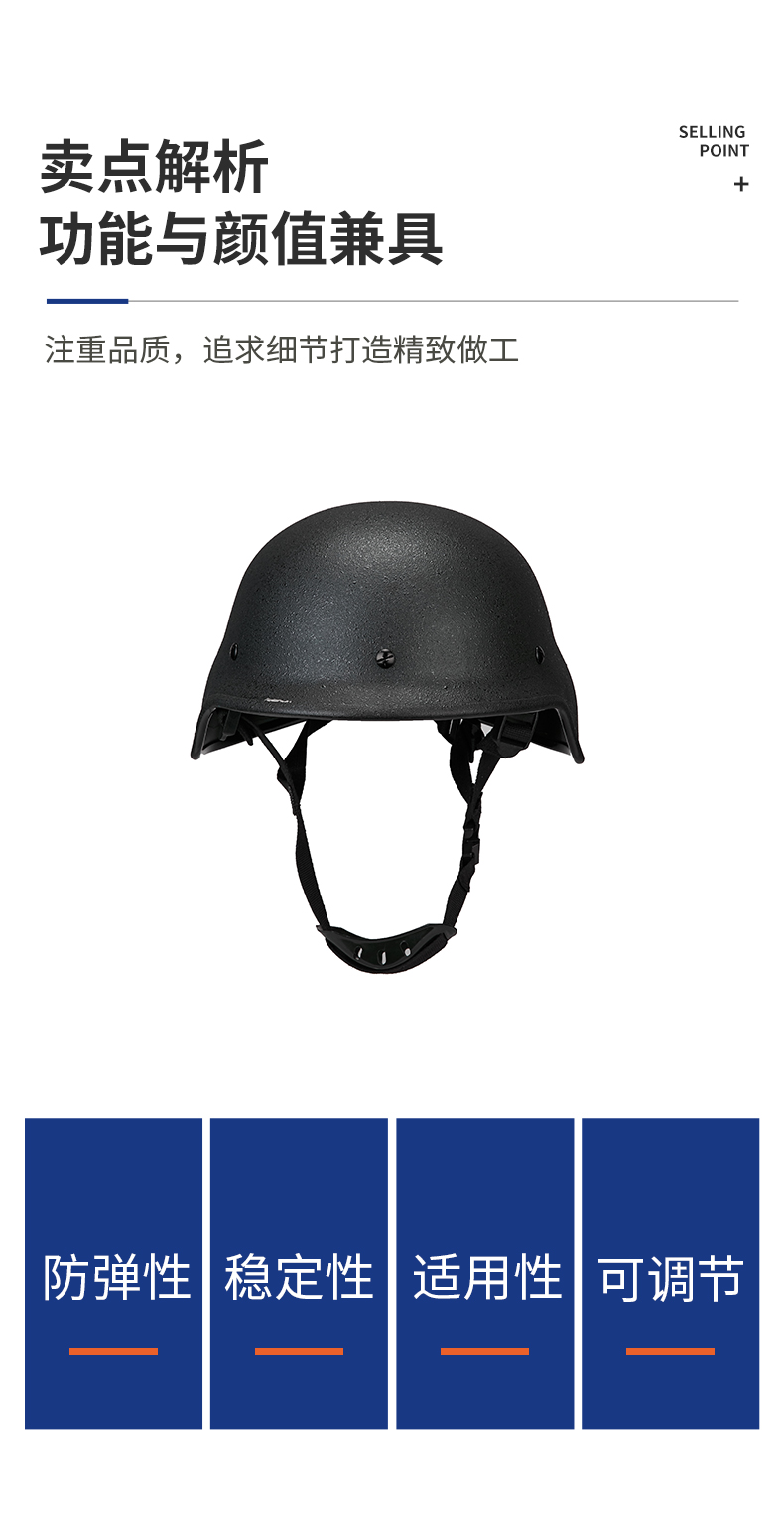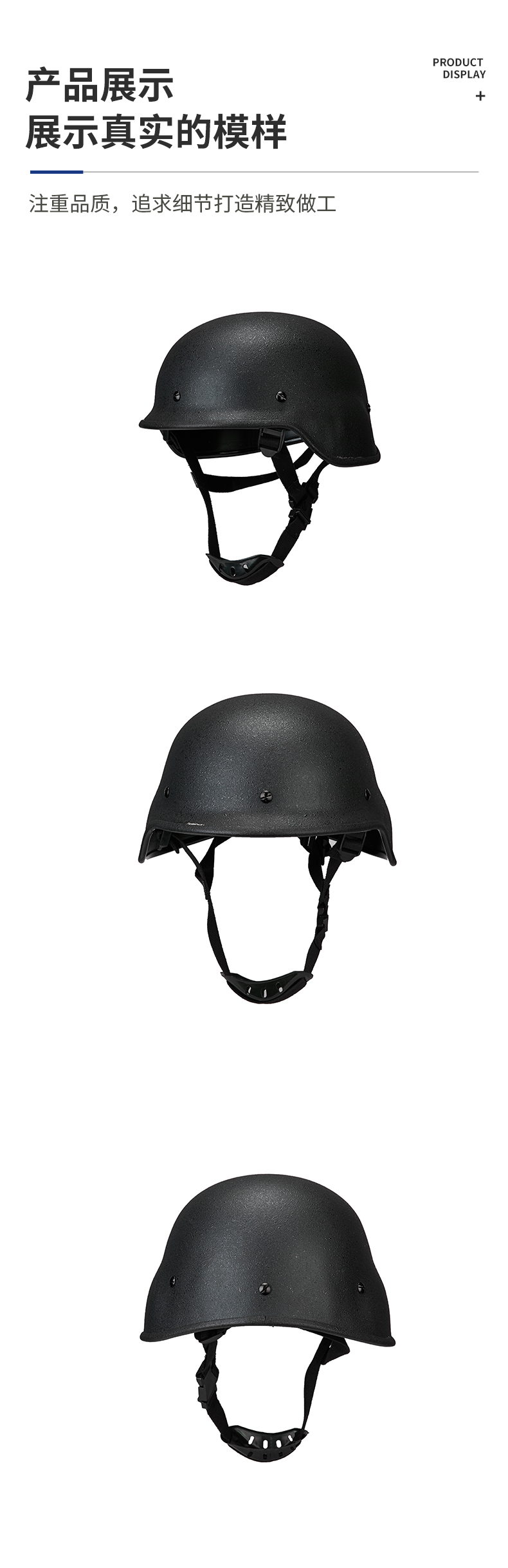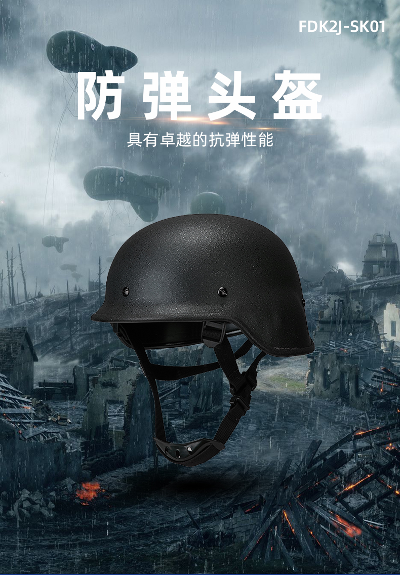 防弹头盔是能吸收和耗散弹头的能量、阻止穿透、减轻钝伤并有效保护人体头部的装备。防弹头盔按盔壳的材质分为金属、非金属、金属和非金属复合三类。除了老式的钢盔以外,制作防弹头盔的主要材料是超高分子量聚乙烯纤维和芳纶两种材质。