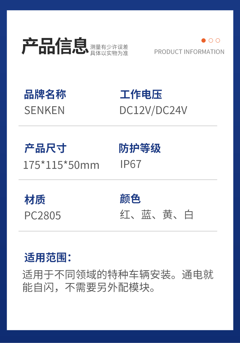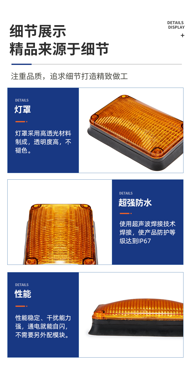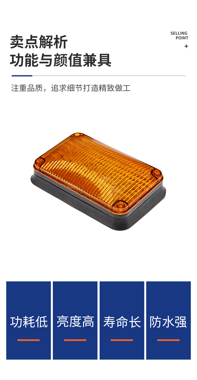 灯罩采用高透光材料制成,透明度高,不褪色; 光源采用进口高亮大功率LED发光管; 螺装式固定; 颜色可在红、蓝、黄、白中任意选择。