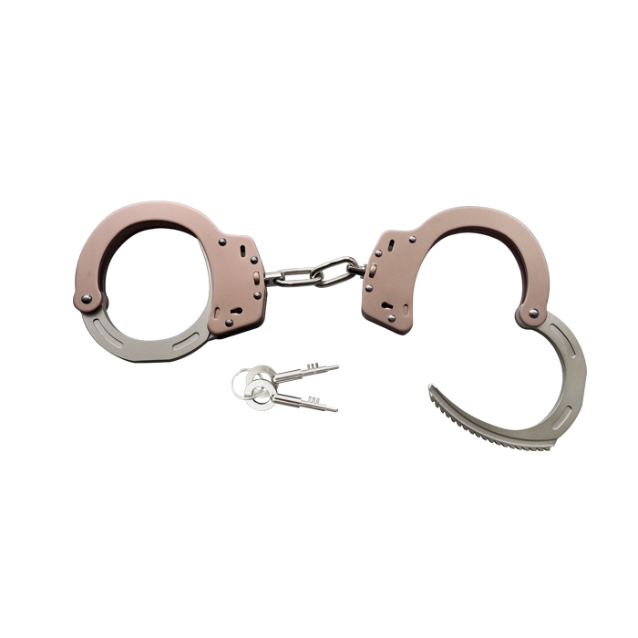 金属手铐由铐体、扇梁、接头、链条、钥匙组成。