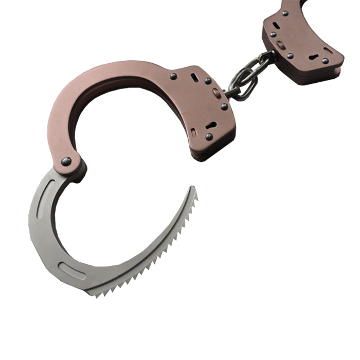 结构:三排齿防拨设计,静臂内部有三个独立弹簧,并装有隔离片,棘齿凸起和动臂卡爪五重结合在一起能固定在手铐动臂的任何位置