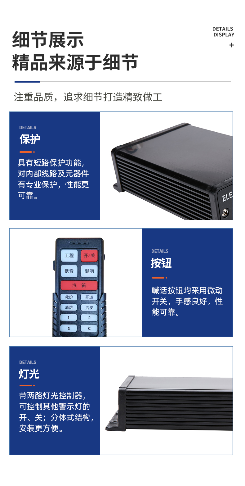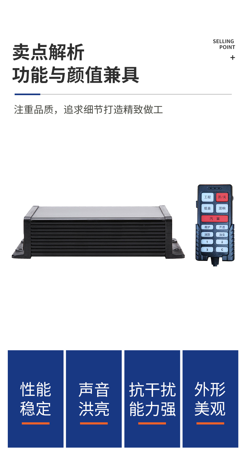 CJB-100-F-F1是一款外观精致、美观、工艺精湛的分体式电子警报器,可以在座椅下或者狭窄空间安装,控制器表面UV硬化,持久如新