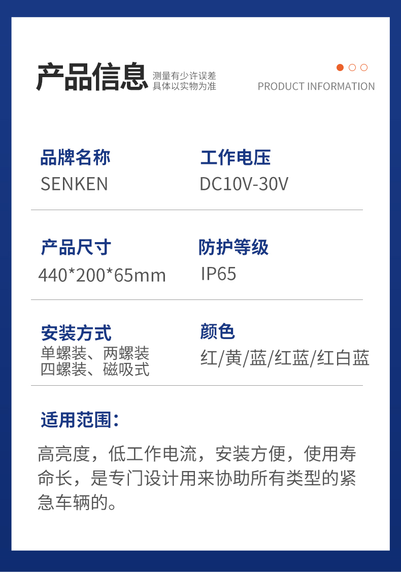 MIB606-S1005采用高功率 led灯,具有独特外形、结构紧凑、操作方便、闪光模式多种多样。具有优越的电路设计特点,具有较高的亮度,低工作电流,安装方便,使用时间长。该产品有多种颜色,各种各样的安装选择,可用于客户,因此它是专门设计来协助所有类型的应急车辆。用户可以很容易地找到并确认特殊指示所需要的闪烁模式。