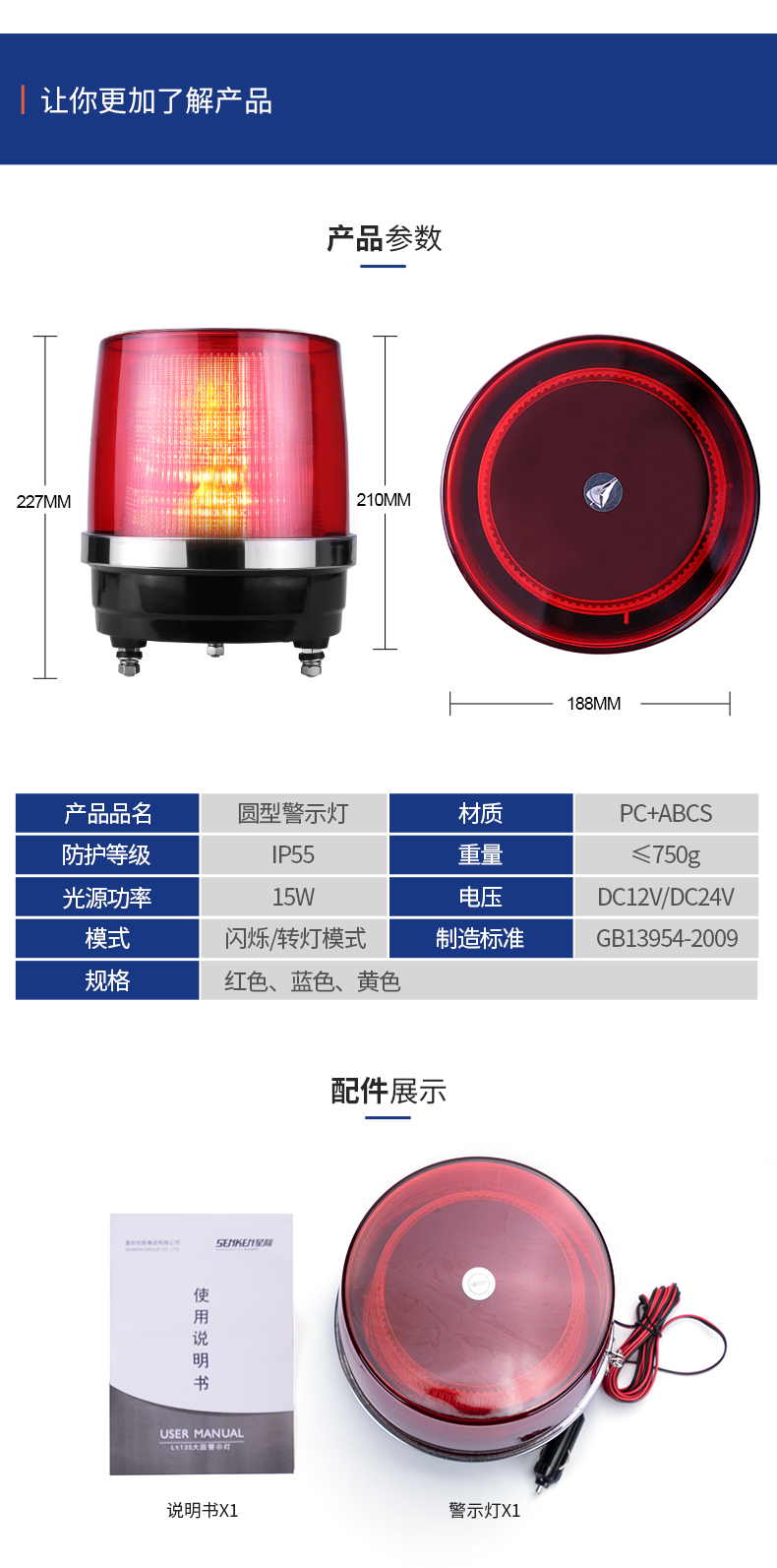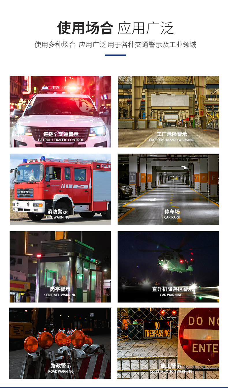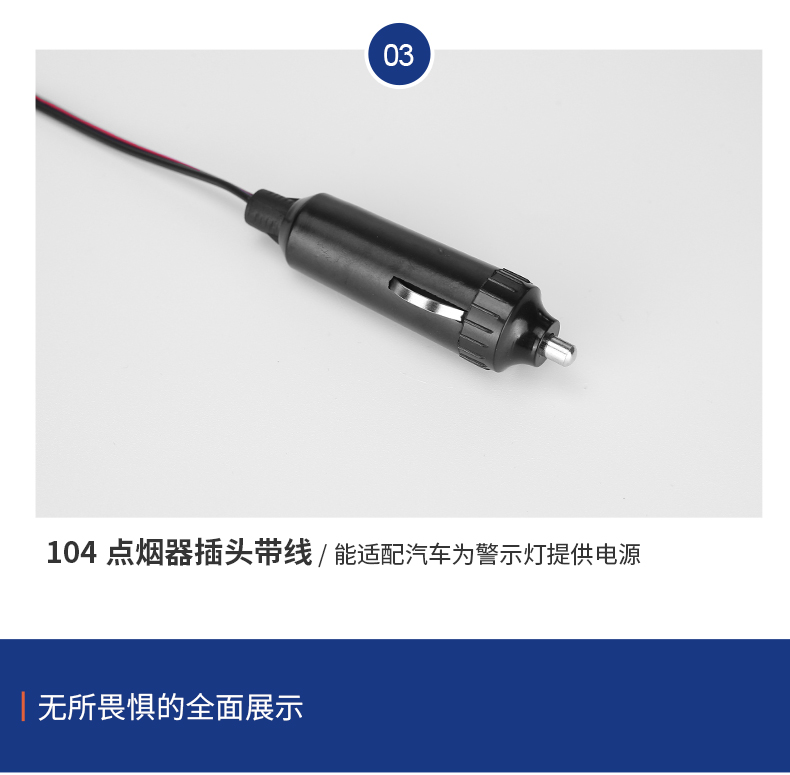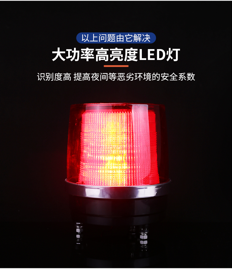 灯罩采用高透光材料制成,透明度高,不褪色;光源采用高亮度大功率LED发光管,具有寿命长、功耗低、透雾能力强、不发热、稳定可靠等特点;适合于大型车辆和治安亭等地方使用;有螺装和磁吸式两种安装方式;有自控与不带自控两种选择。