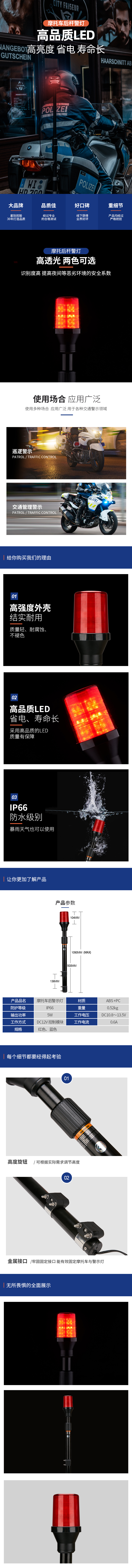 光源采用LED灯管。 聚碳酸脂双层灯罩,防尘、防水。 支撑杆采用铝合金材料,并配有橡胶减震装置。 高度可在740mm-1135mm之间任意调节。 内置驱动电路或外置驱动模块。