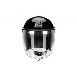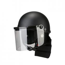 面罩性能:透光率大于等于85%,光畸变最大量小于等于6’,防暴头盔的面罩能承受4.9J动能的冲击以及1g铅弹以150m/s±10m/s的速度冲击