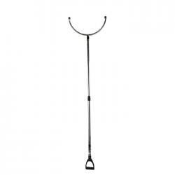 重量仅2公斤左右,可拆卸,最短1米左右,最长可伸至2米多远,末端是半月弧形钢叉,没有锐利棱角。这种工具既可保证执勤人员的安全,也能有效制服歹徒,且可避免对歹徒的人身伤害