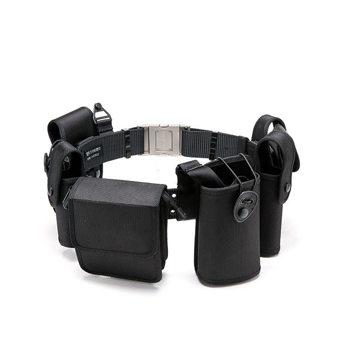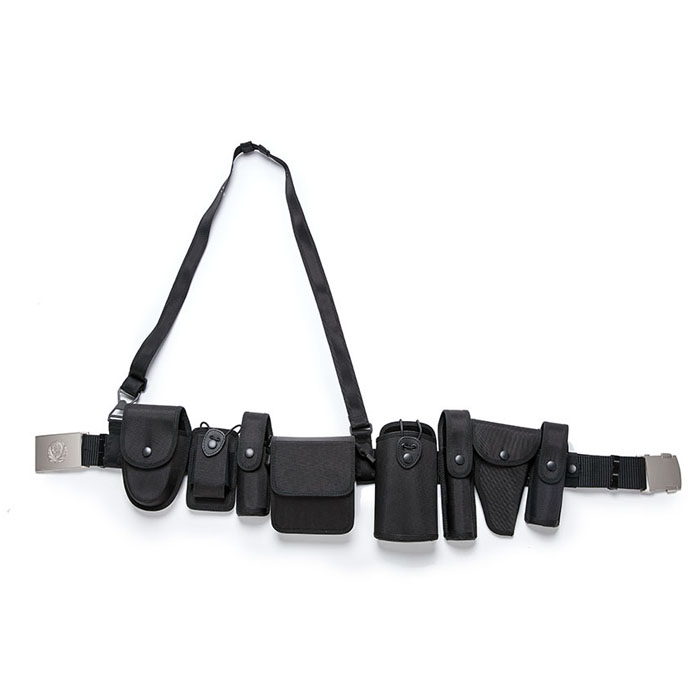 多功能腰带有黑色、白色两种颜色;腰带主体一般采用尼龙编织,其由腰带钎子、带体、斜挂带和八个装具套(手铐套、对讲机套、强光手电套、警用工作包、警用水壶套、警棍套、手枪套、催泪喷射器套。枪套除外,其他可单独拆卸)组成。