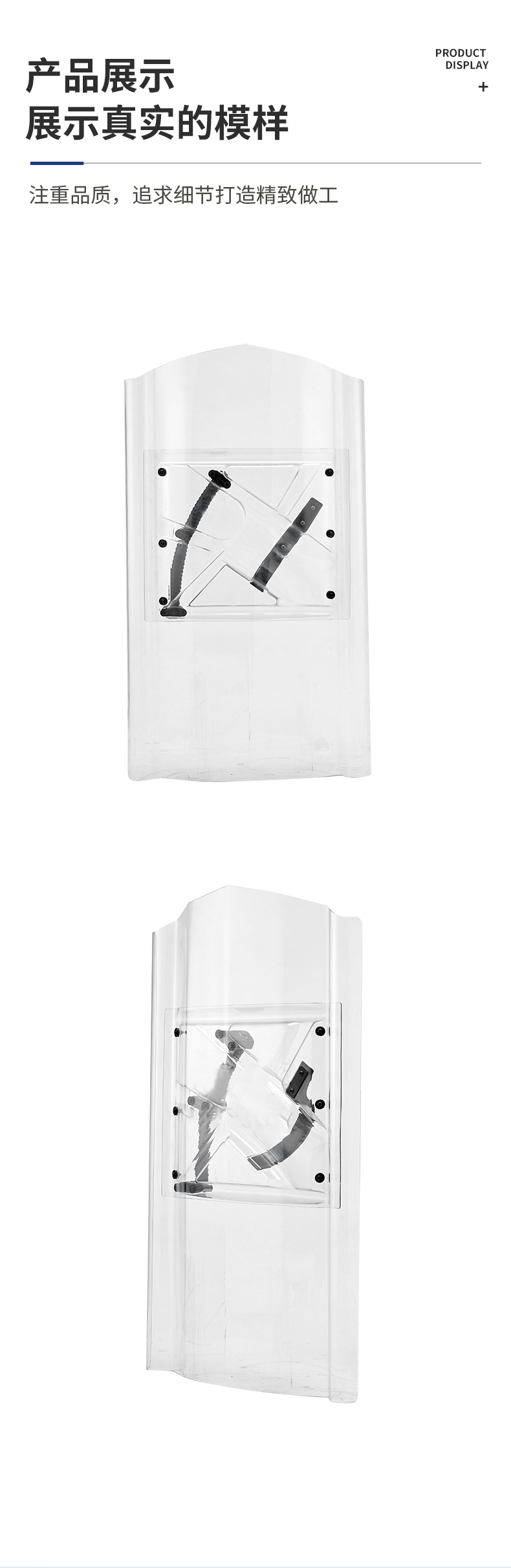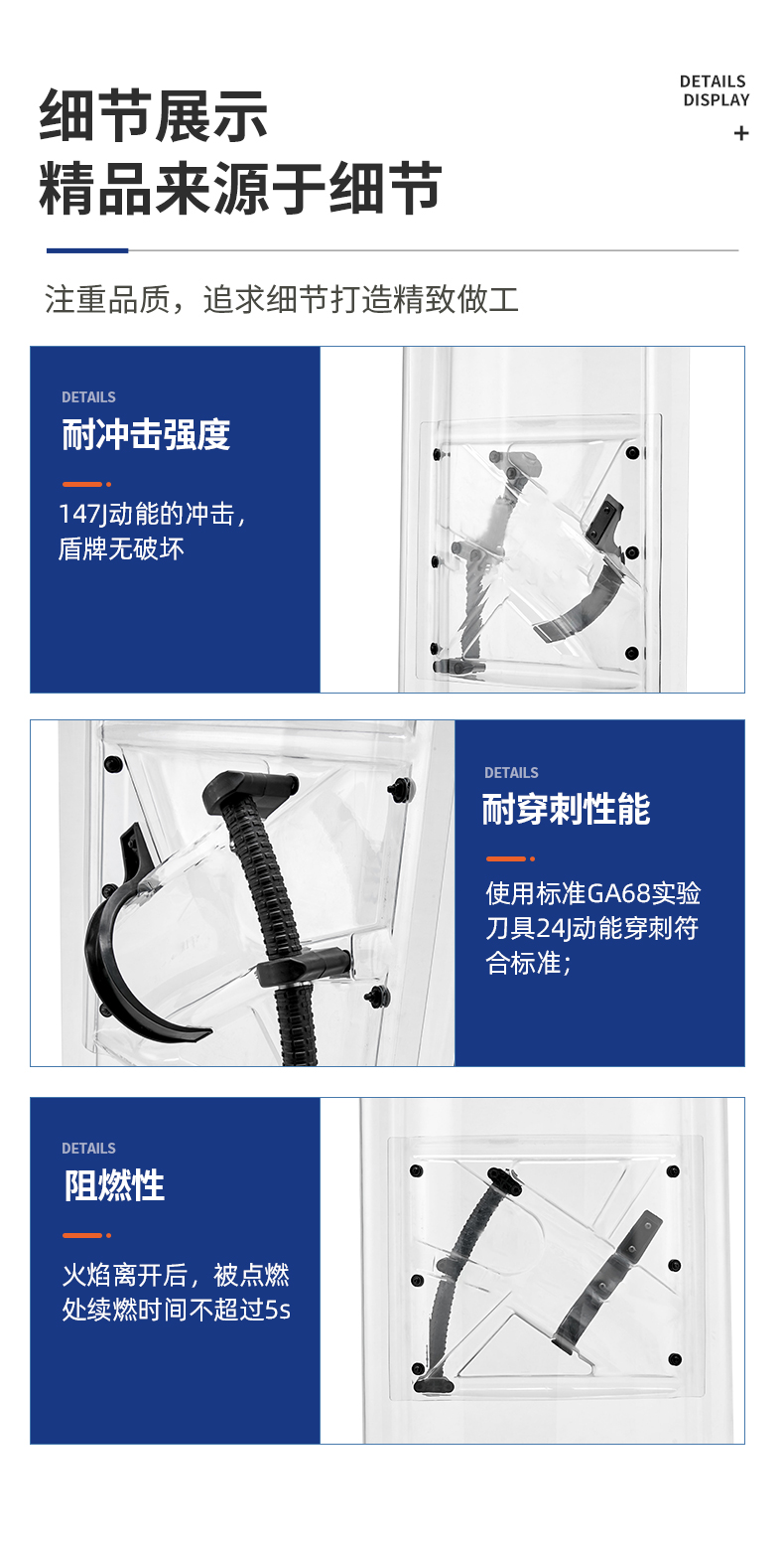 新一代防暴盾牌通过综合提高性能和设计,在持续的暴力冲击过程中,真正能够坚守安全防护的持久防线。自然斜角度握柄符合人体工学设计,遇外力施加重击时,肩、肘、腕关节保持在安全受力的自然角度,即使不主动发力,也能在瞬间化解重击。