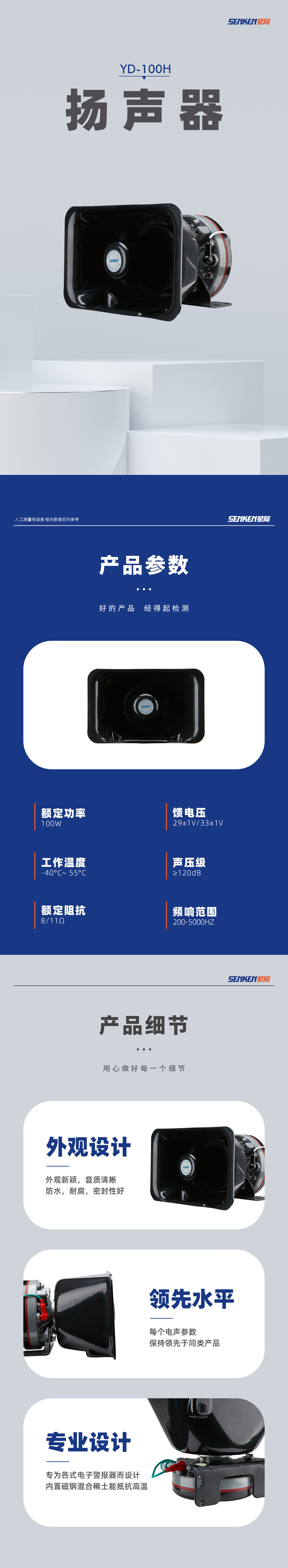 YD-100I扬声器采用国际先进技术,专为各式电子警报器而设计;内置磁钢混合稀土能抵抗高温。外观新颖,音质清晰,防水,耐腐,密封性好。本产品是防水,不锈钢和密封,每个电声参数保持领先于同类产品。