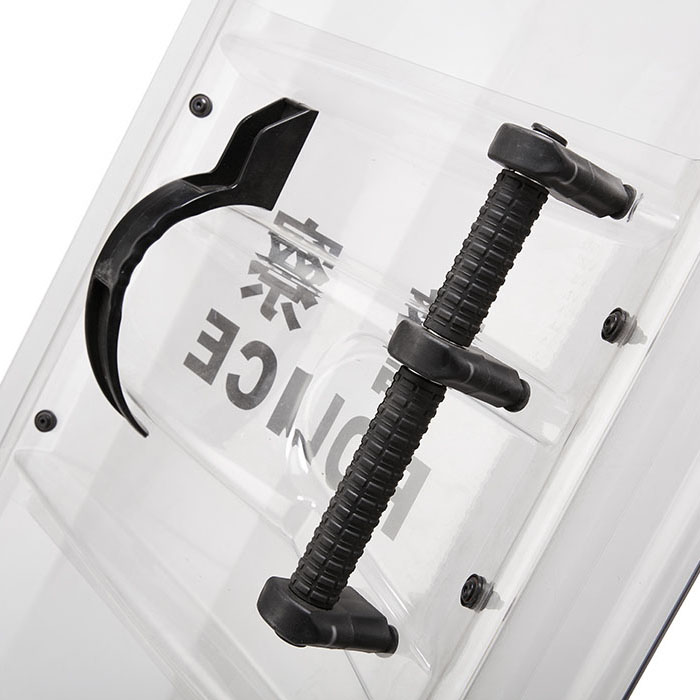 能抵挡滑膛枪发射3mm的散弹,也能防御瞬间汽油燃烧弹所带来的高温灼伤的危险,盾牌背部的加强板可有效降低双手的冲击与振动,新型双把手设计,形成三角力学支撑面,盾牌的V型面设计,可有效化解各个方面过来的重击,盾牌由高品质,非常耐用的聚碳酸酯制成。