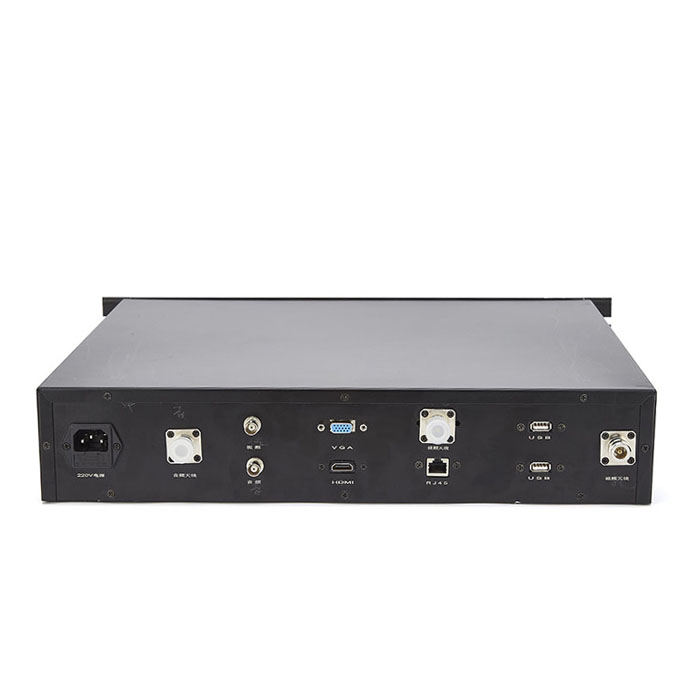 “基站接收机”负责接收车载信号或单兵信号,对移动车载进行图像语音管理,调度,接收机的音视频信号可以双向发送给车载系统,每一个车载系统可以与中心进行双向IP交流,进行视频高清会议。每个基站系统都可以跟中心进行通讯。支持4/8路1080P图像,支持GPS/北斗定位,支持双向语音,支持全IP架构。