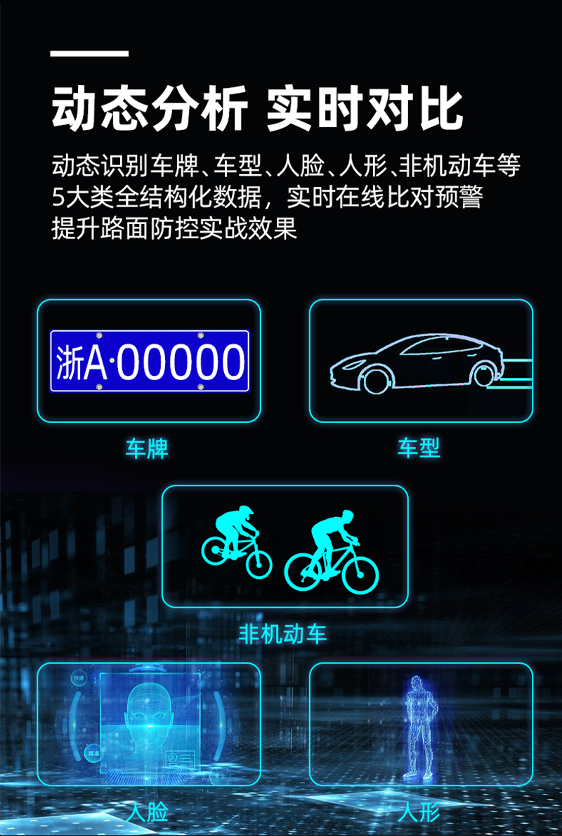 在第二代移动智能巡逻终端的基础上,对外观和结构部分进行了提升,并增加更多智能分析的功能,能够对来往车辆和来往人员进行特征分析,提取车牌号、车牌颜色、人脸等特征信息,并对其进行数据结构化。广泛应用于110巡逻、交警巡逻等。